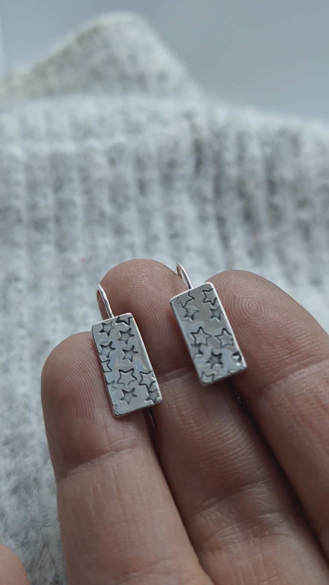 Elevate your everyday look with these captivating sterling silver drop earrings, featuring an enchanting oxidised star design that catches the light beautifully. Inspired by adtrology and Chibese Zodiac, our future are written in the stars, shining bright.The rectangular silhouette offers a modern edge while the celestial motif brings personality and charm to any outfit. Crafted from solid sterling silver for lasting quality and durability, these statement pieces are perfect for those who love distinctive jewellery with character. Complete your cosmic aesthetic by exploring our coordinating Sky High Collection pieces. Let your style shine as brightly as the stars.